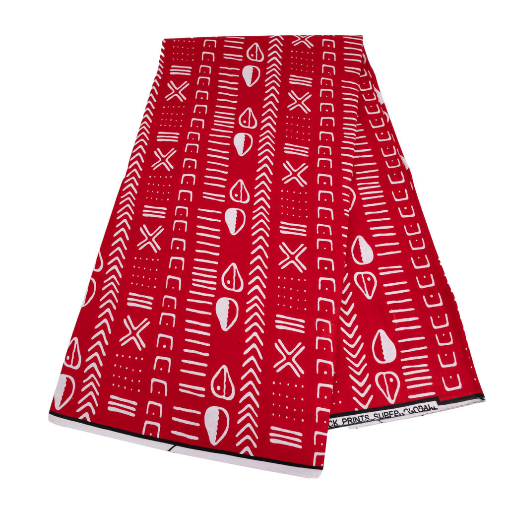 Bring the timeless spirit of Malian tradition to your wardrobe with this striking 6-yard African Wax Print. This fabric reimagines the classic aesthetics of Bogolanfini (mudcloth) in a bold, saturated crimson red, blending ancient symbolism with the crisp finish of a modern wax print.