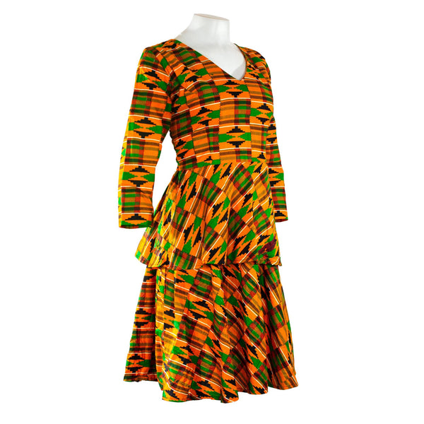 AFRIKAN ATTIRE Long Cotton & Wax Peplum dress
