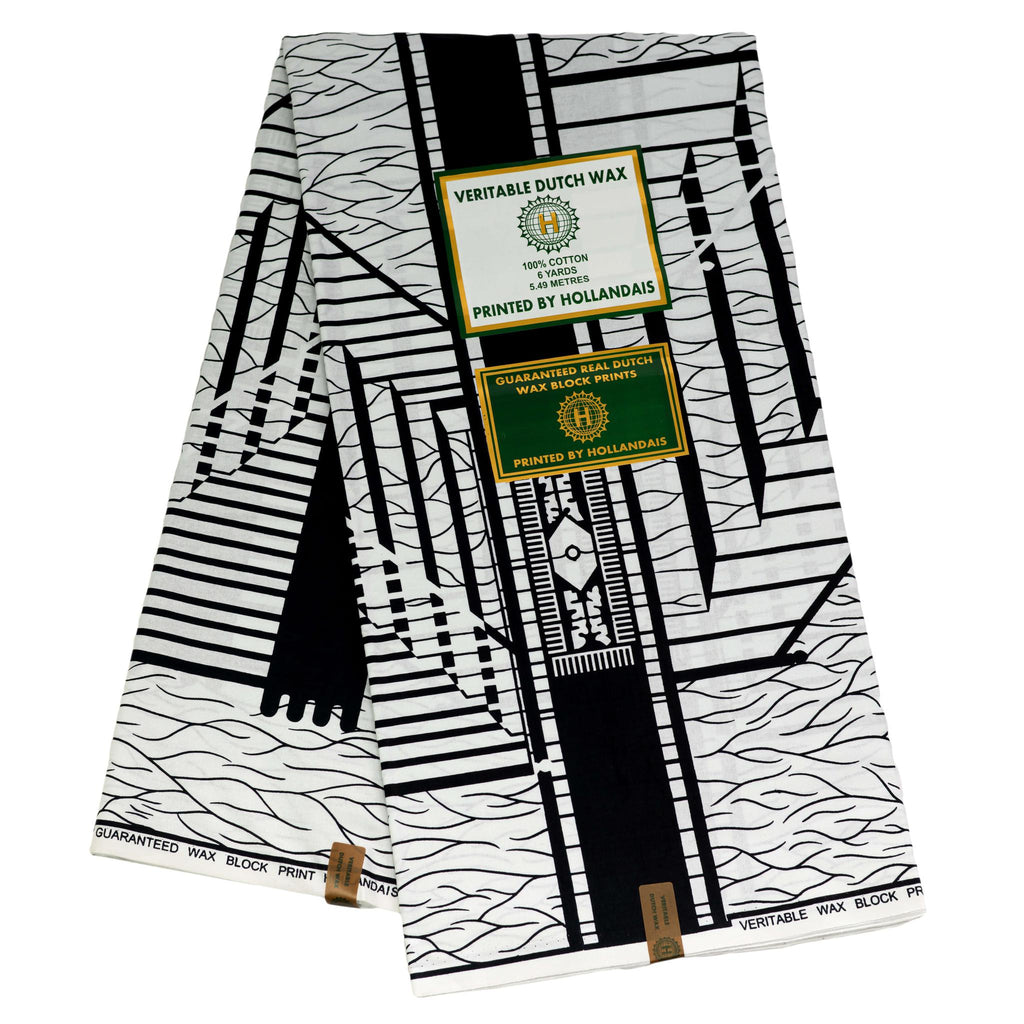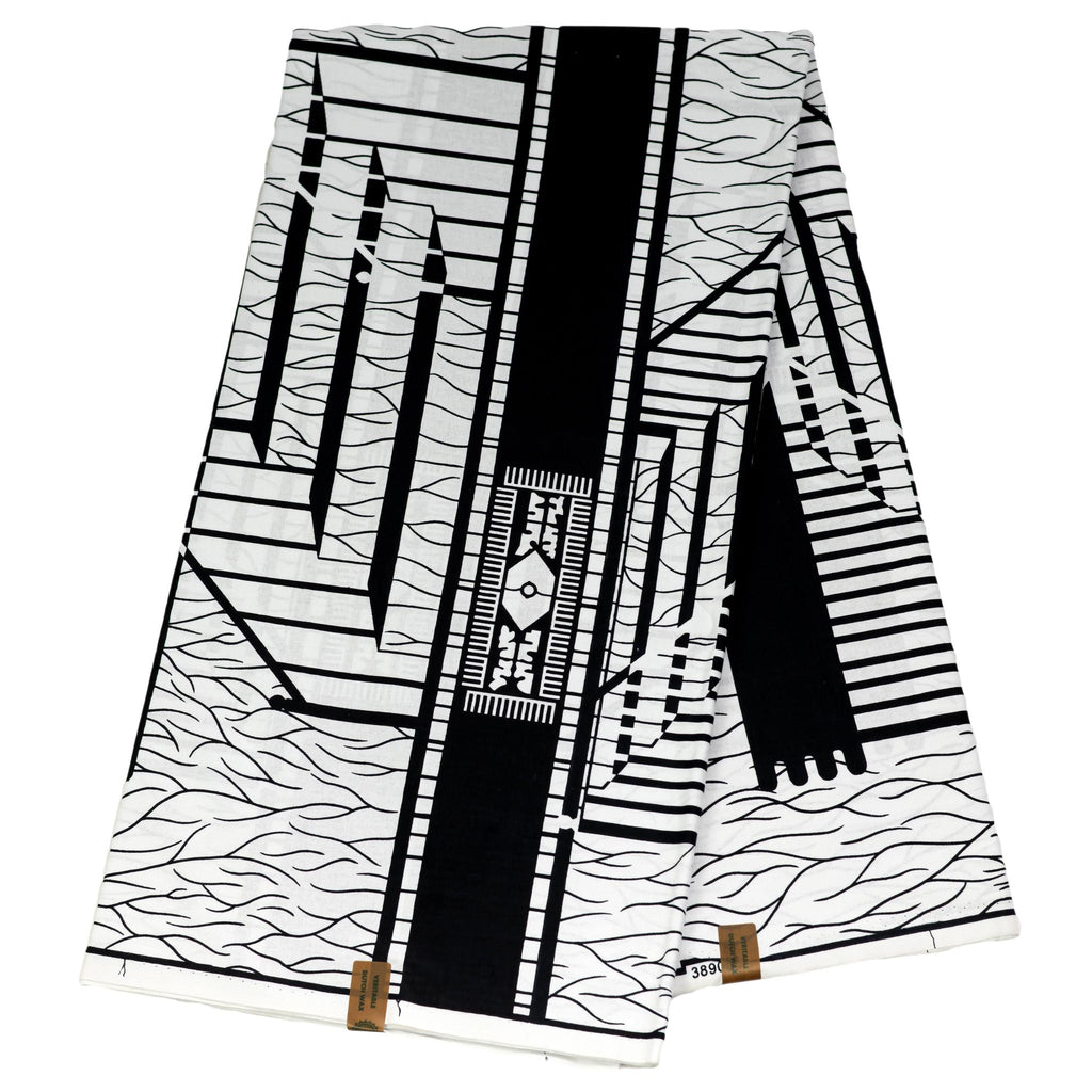Black & White Ankara Wax Print Fabric - 6 Yards