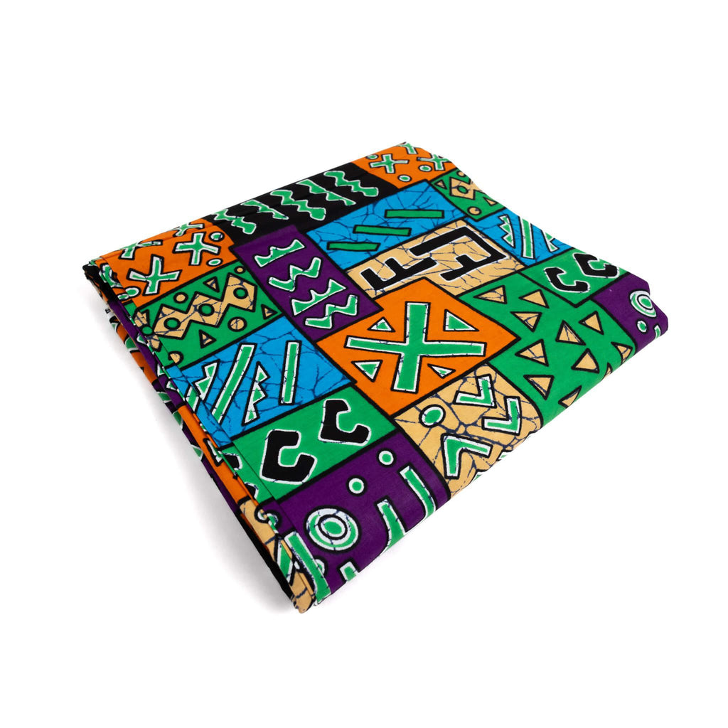 Batik Texture: The white and colored lines feature the signature "veining" or crackle effect of wax-resist dyeing, adding depth and organic texture to the geometric shapes.