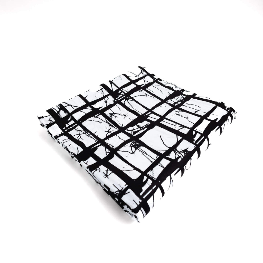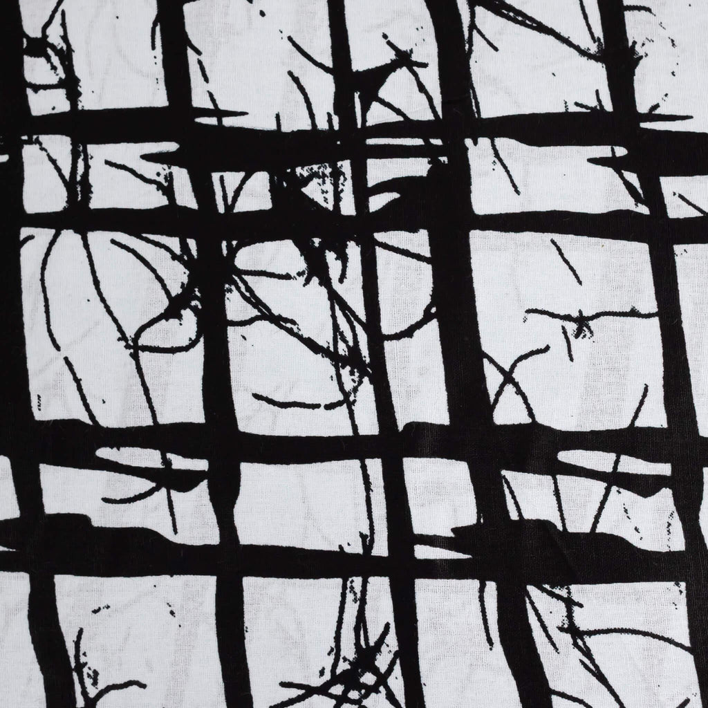 The Design This print features a bold abstract grid pattern. Unlike a rigid ruler-drawn check, these black lines are thick, organic, and intersecting, creating a hand-drawn aesthetic against a stark white background.