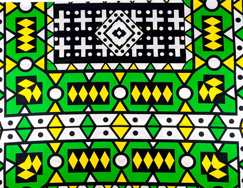 Green and Yellow Geometric African Wax Fabric