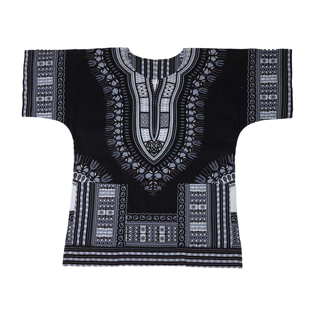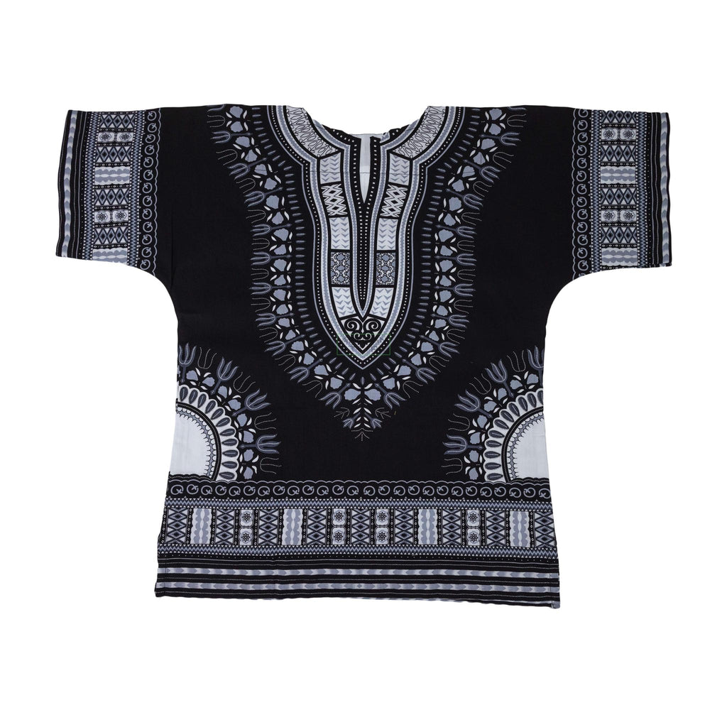 Embrace a timeless symbol of West African culture with our Heritage Noir Dashiki. This unisex shirt is meticulously designed to offer a blend of effortless comfort and bold, artistic expression. Featuring the classic Angelina print, the intricate geometric patterns and floral-inspired borders are set against a deep obsidian background, creating a high-contrast look that demands attention.