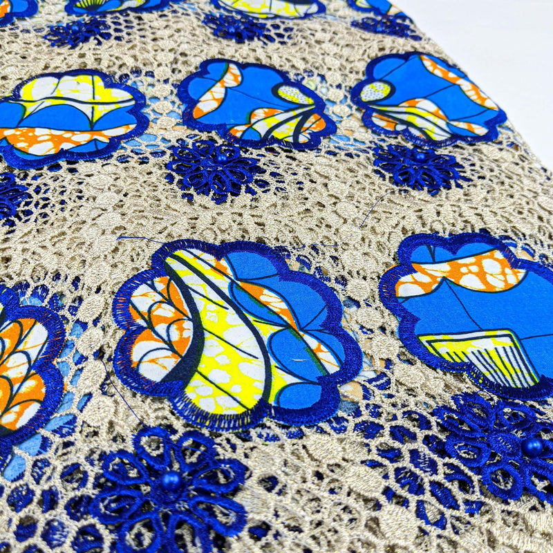 Blue African Wax with Cord Lace Fabric - 5 yards