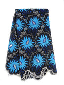 Blue net lace with woven leaf embroidery with crystals in 5 yards.