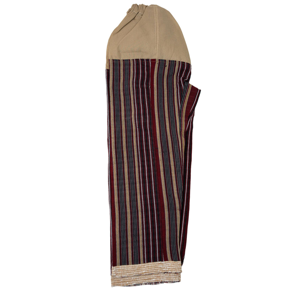 • Two-Tone Trousers: Designed for comfort and ease of wear, these pants feature a solid beige cotton yoke at the waist, transitioning into the matching burgundy striped woven fabric on the legs. They are finished with an elastic waistband for a secure fit.