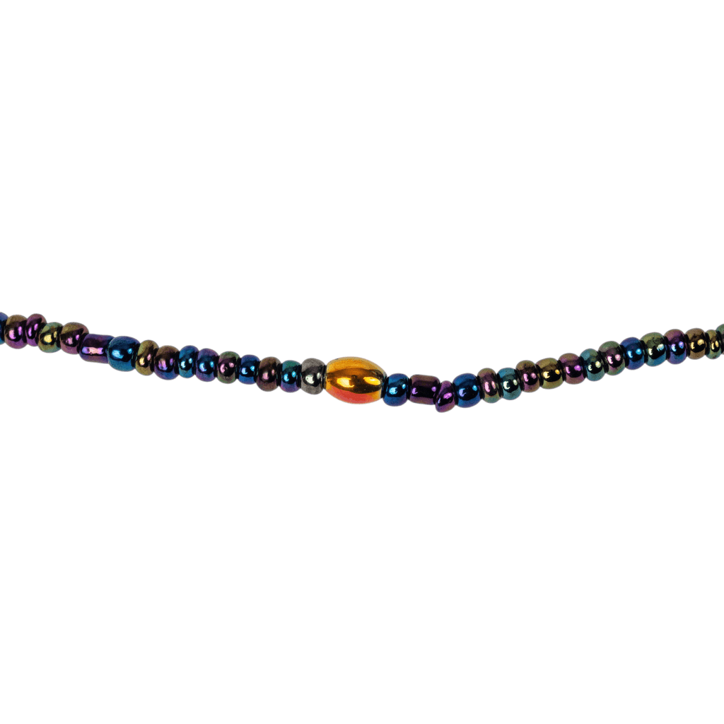 Adorn yourself in captivating color. Embrace your divine feminine energy with our Midnight Mirage Waist Beads. These beautifully crafted beads feature a mesmerizing, iridescent color palette—reminiscent of a midnight galaxy or a shimmering peacock feather. Deep, metallic shades of purple, teal, midnight blue, and emerald green catch the light from every angle, complemented perfectly by striking metallic gold and vibrant pink accent beads.