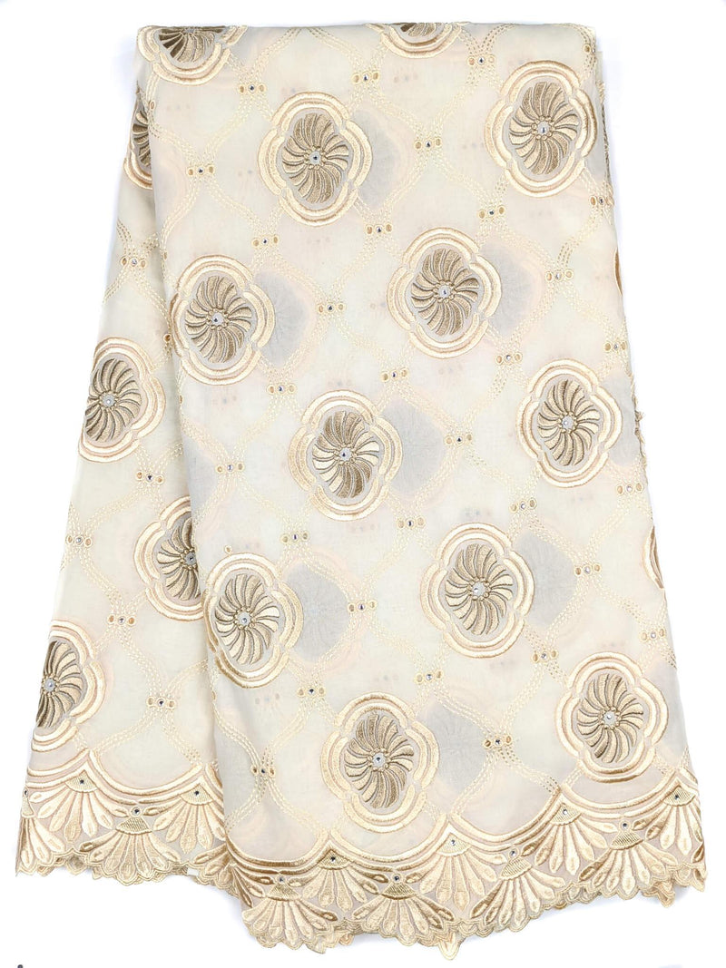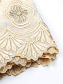 Cotton gold and peach lace with patterned embroidery and crystals in 5 yards