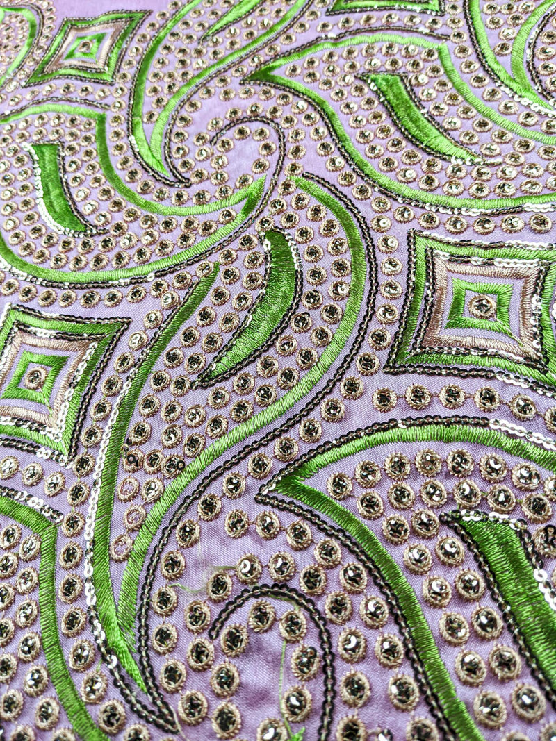 Pink and green cotton-linen george fabric with embroidery and sequence in 5 yards