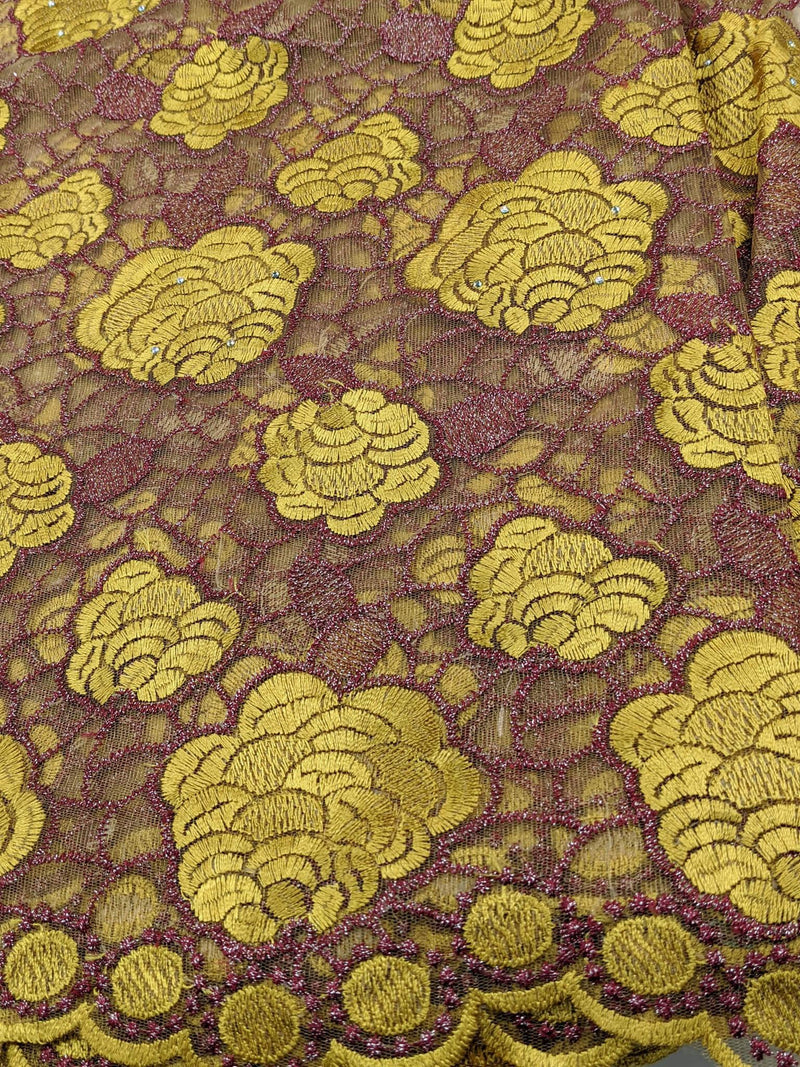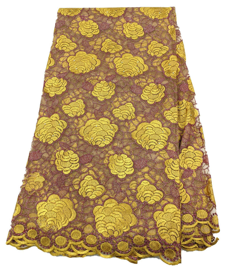 Pink and yellow french net lace with crystals, and embroidery in 5 yards.
