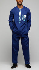 African Fashion Dark Blue Embroidered Long-sleeve Native Set