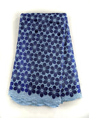 Shades of blue cotton lace with embroidery and crystals in 5 yards