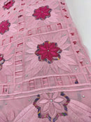 Shades of pink and multicolored cotton lace with crystals and embroidery in 5 yards.