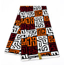 White, Orange & Wine Geometric African Wax Print Fabric - 6 Yards