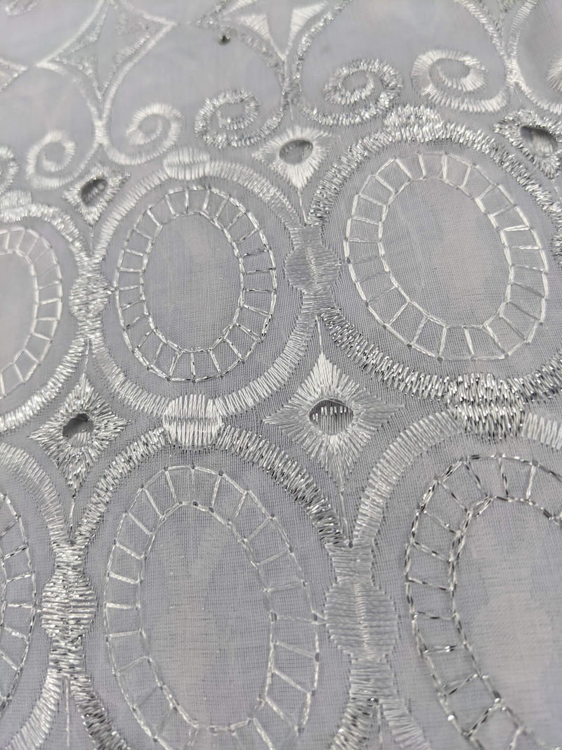 White and silver cotton lace with embroidery, and silver crystals in 5 yards.
