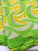 Yellow, silver  & green cotton swiss lace with embroidery patterns and crystals in 5 yards.