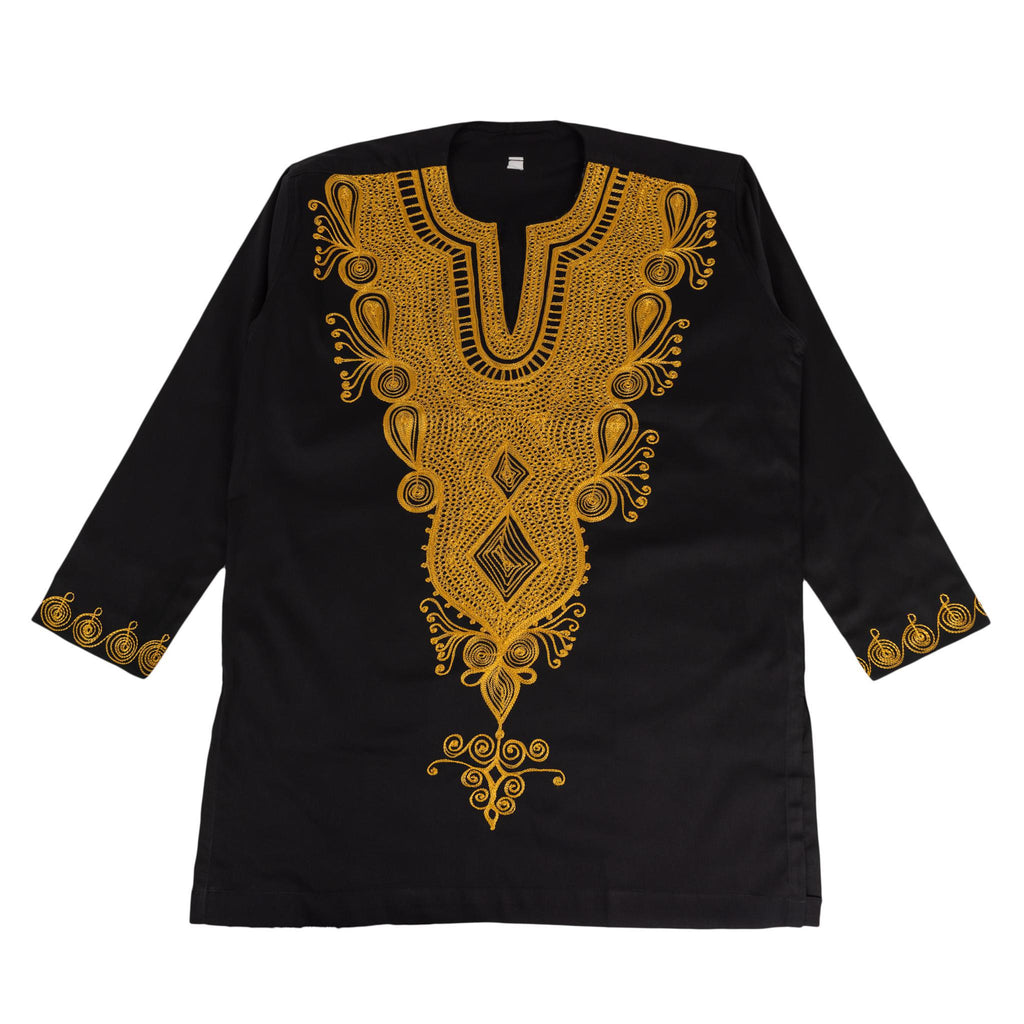 Exquisite Gold Embroidery: The chest, neckline, and cuffs of the tunic are lavishly adorned with stunning and intricate gold-colored embroidery. The dense, detailed patterns, featuring beautiful swirls and geometric shapes, create a focal point of sheer luxury and masterful craftsmanship that sets you apart.